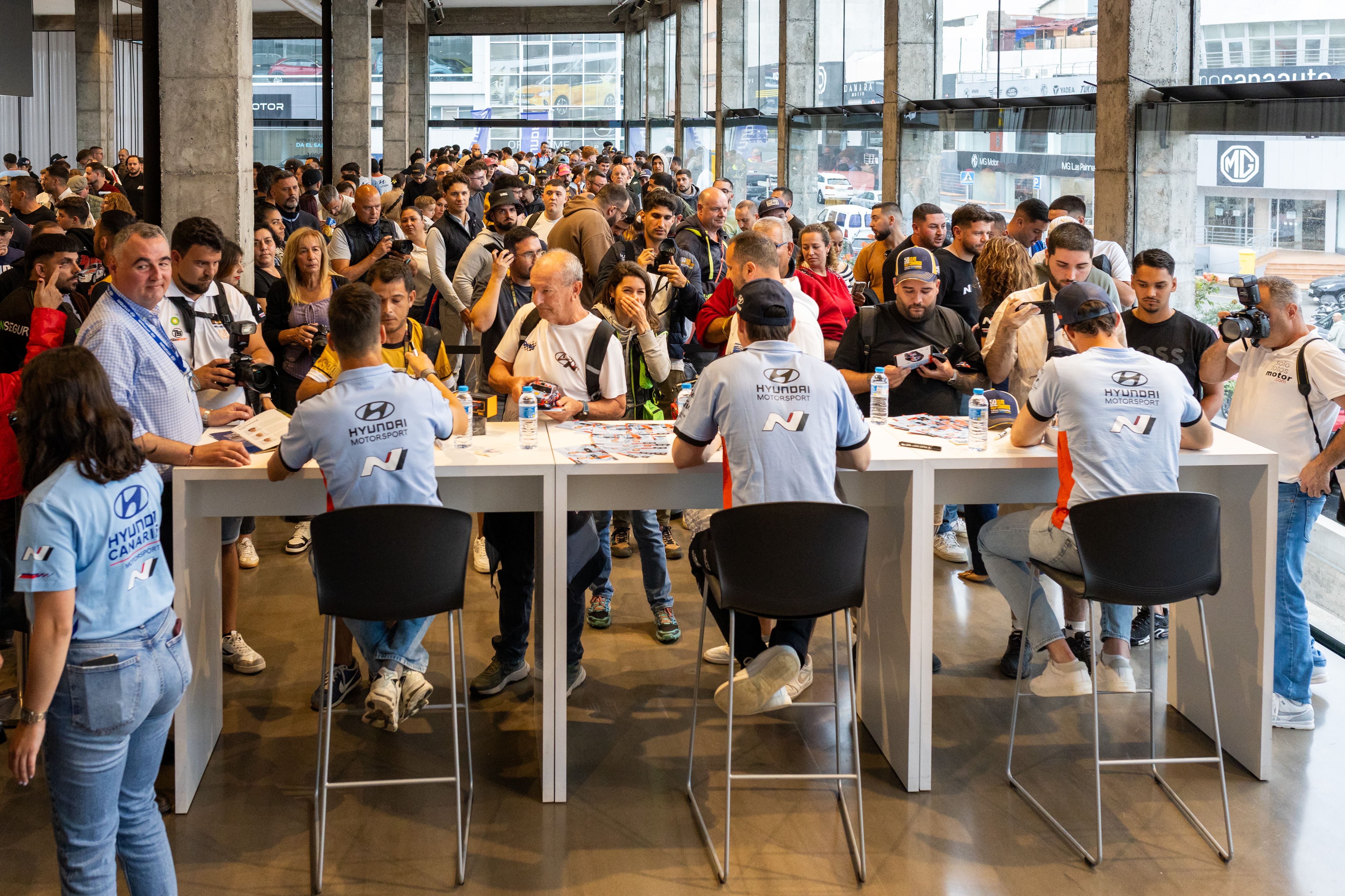 La expectación era máxima y la afición insular no defraudó en absoluto. El concesionario iGran Canaria se vistió de gala para acoger la presentación oficial del equipo Hyundai Shell Mobis WRT, un encuentro multitudinario que reunió a cientos de seguidores en vísperas del esperado 50º Rally Islas Canarias-Rally de España. Los asistentes tuvieron la oportunidad de arropar a los pilotos mundialistas Thierry Neuville, Adrien Fourmaux y al español Dani Sordo, quienes compartieron sus sensaciones y posaron junto al espectacular vehículo Hyundai i20 N Rally1.