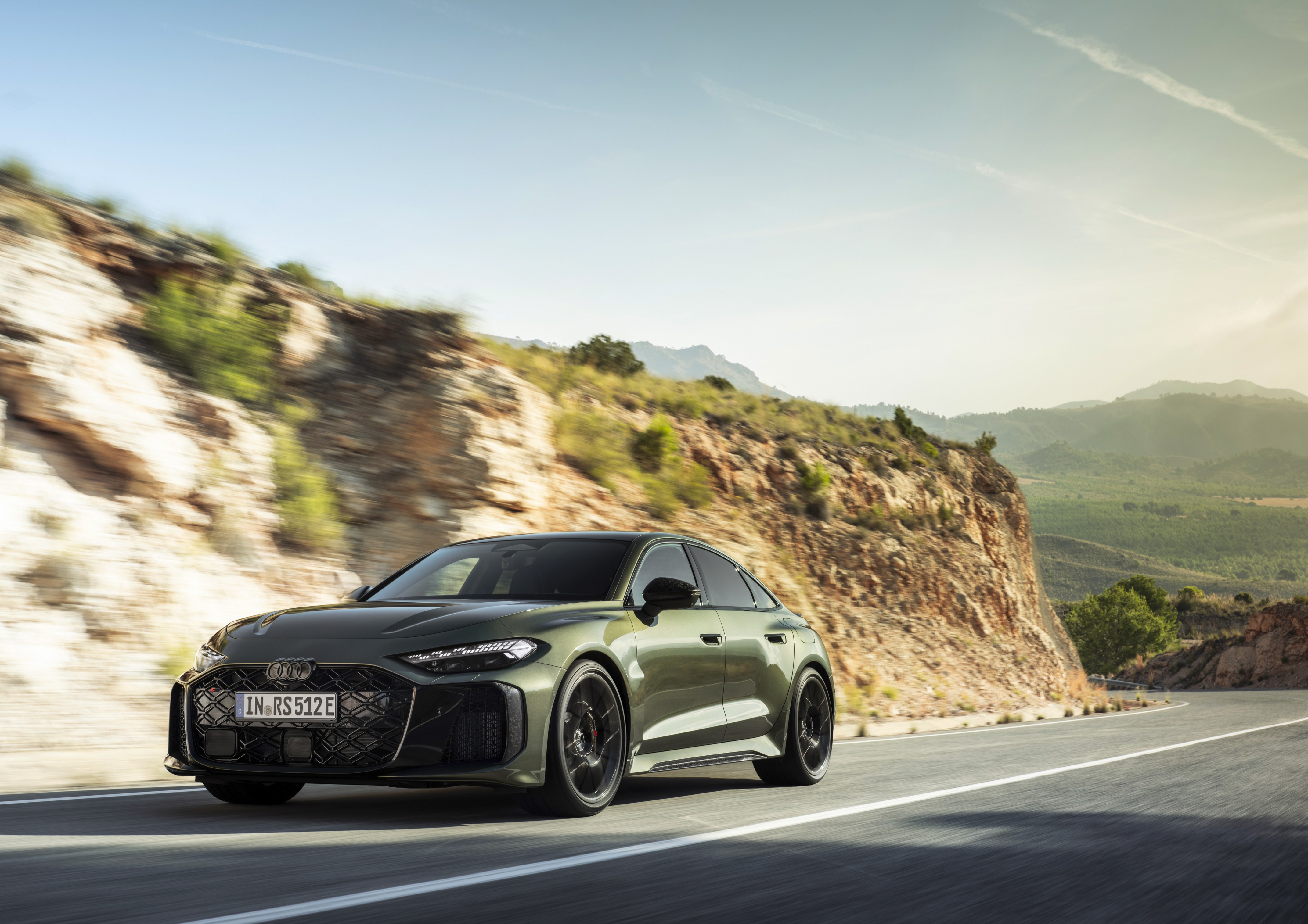 La carrocería está ensanchada aproximadamente nueve centímetros respecto al A5 convencional y puede montar llantas de 20 o 21 pulgadas. El sistema de frenos está disponible en acero o en versión cerámica opcional.