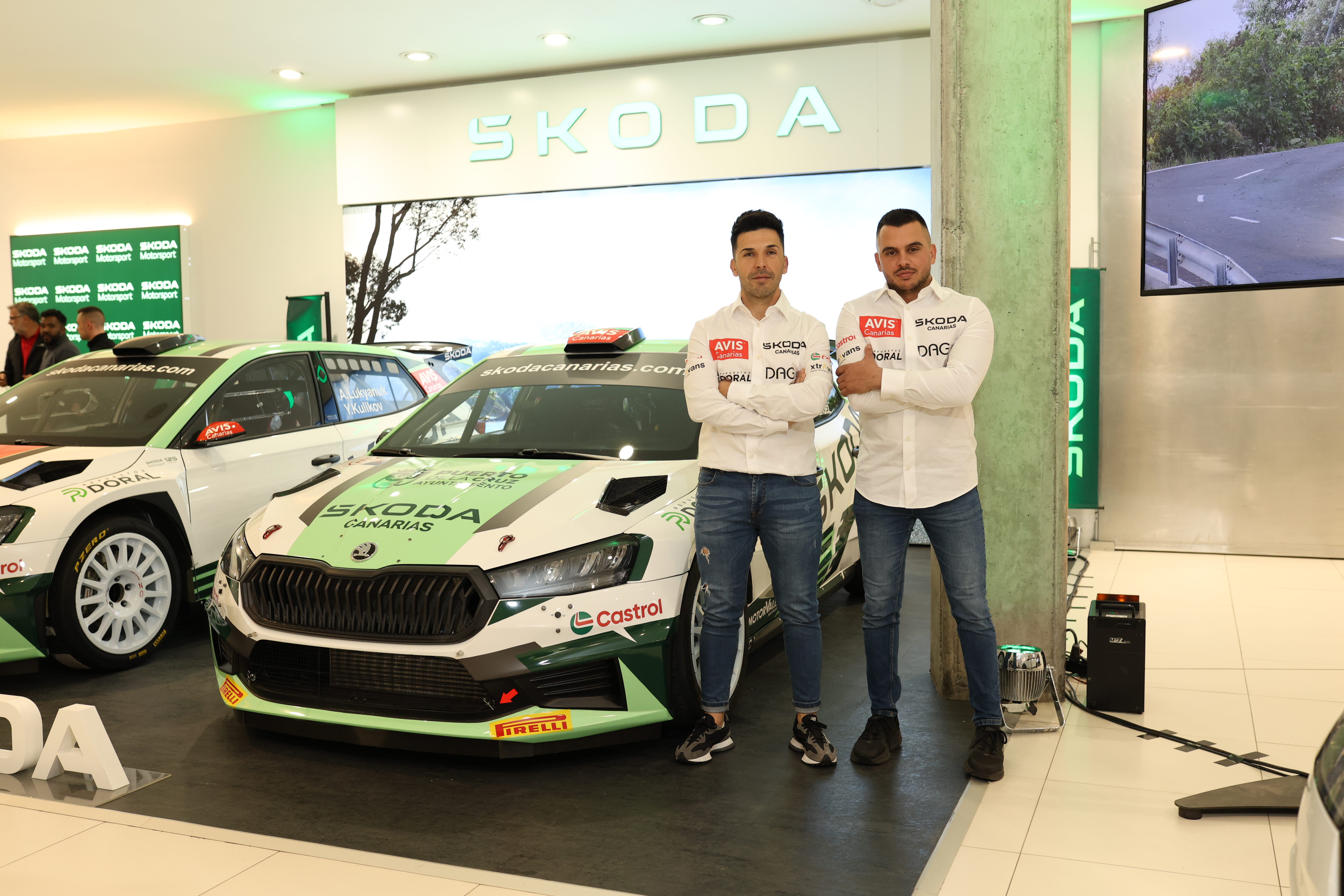 El concesionario de Škoda Canarias en Miller Bajo acogió la puesta de largo del equipo para la temporada 2026 en un ambiente que mezcló aficionados, medios y una evidente expectación por ver de cerca las dos unidades del Fabia RS Rally2.